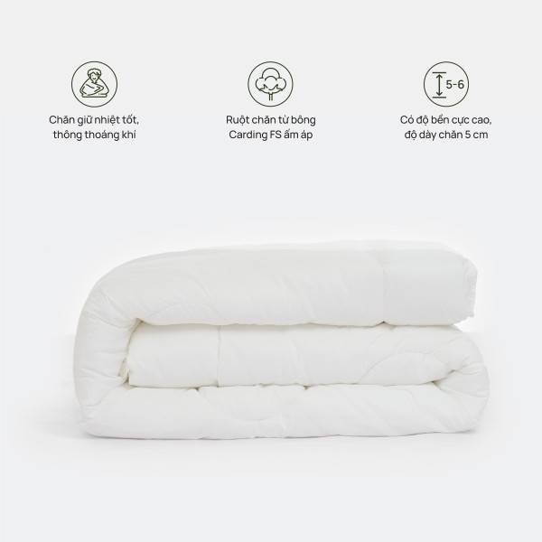Ruột chăn từ bông Micro xốp, nhẹ tựa lông vũ. Độ dày 5-6cm đảm bảo giữ nhiệt tốt trong thời tiết giá lạnh. Sản phẩm từ chất liệu tuyển chọn, vô cùng thoáng khí, không bí bách khi sử dụng.